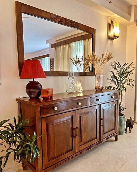 It is a perfect blend of style and functionality. Its sleek design includes a compact mirror for a quick look before heading out and built-in storage for keeping essentials like keys and small accessories organized. Positioned near your entrance, it not only enhances the space with its chic appearance but also provides a practical solution for maintaining a clutter-free area. With its combination of convenience and elegance, this piece is a stylish addition to any entryway.