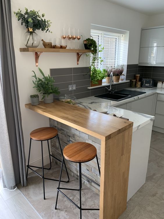 A couple of stylish bar stools can transform your kitchen into a welcoming space for casual dining and conversation. They offer both functionality and a touch of elegance, making the kitchen a more versatile and inviting area.