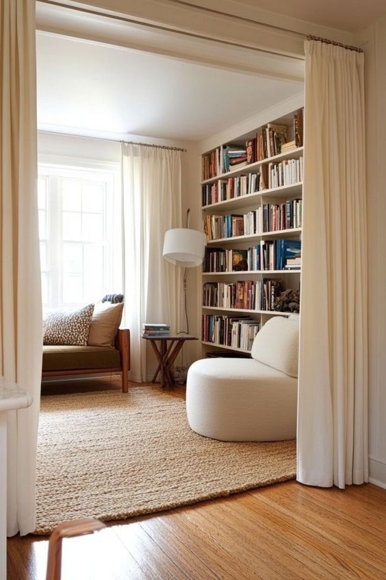 Textiles are key to crafting a warm and inviting living room. Curtains or blinds add elegance while offering privacy and light control, and throw pillows introduce comfort and style. Mats or small floor coverings enhance the space with warmth and definition. Together, these elements create a cozy, personalized environment that enhances the room’s overall ambiance.